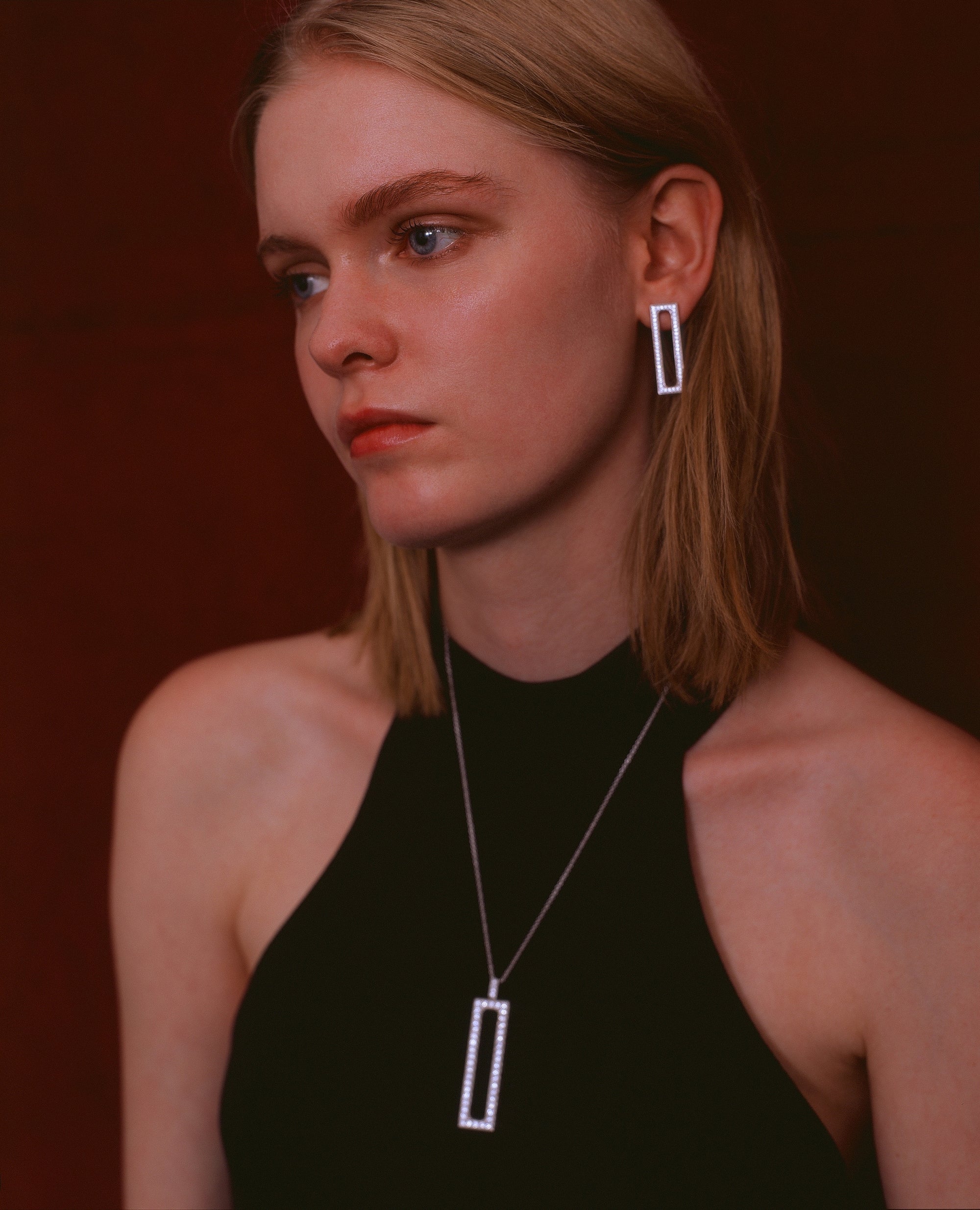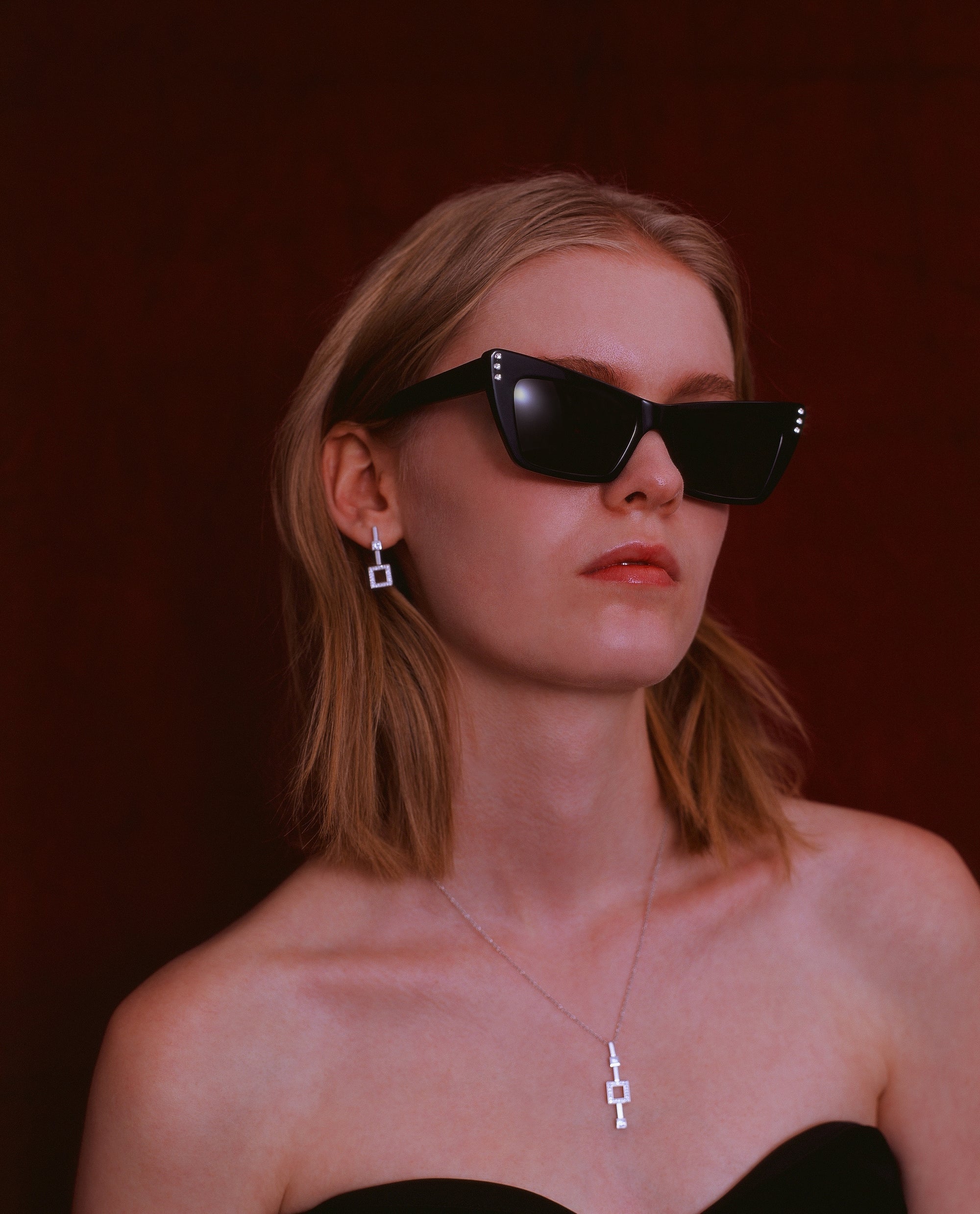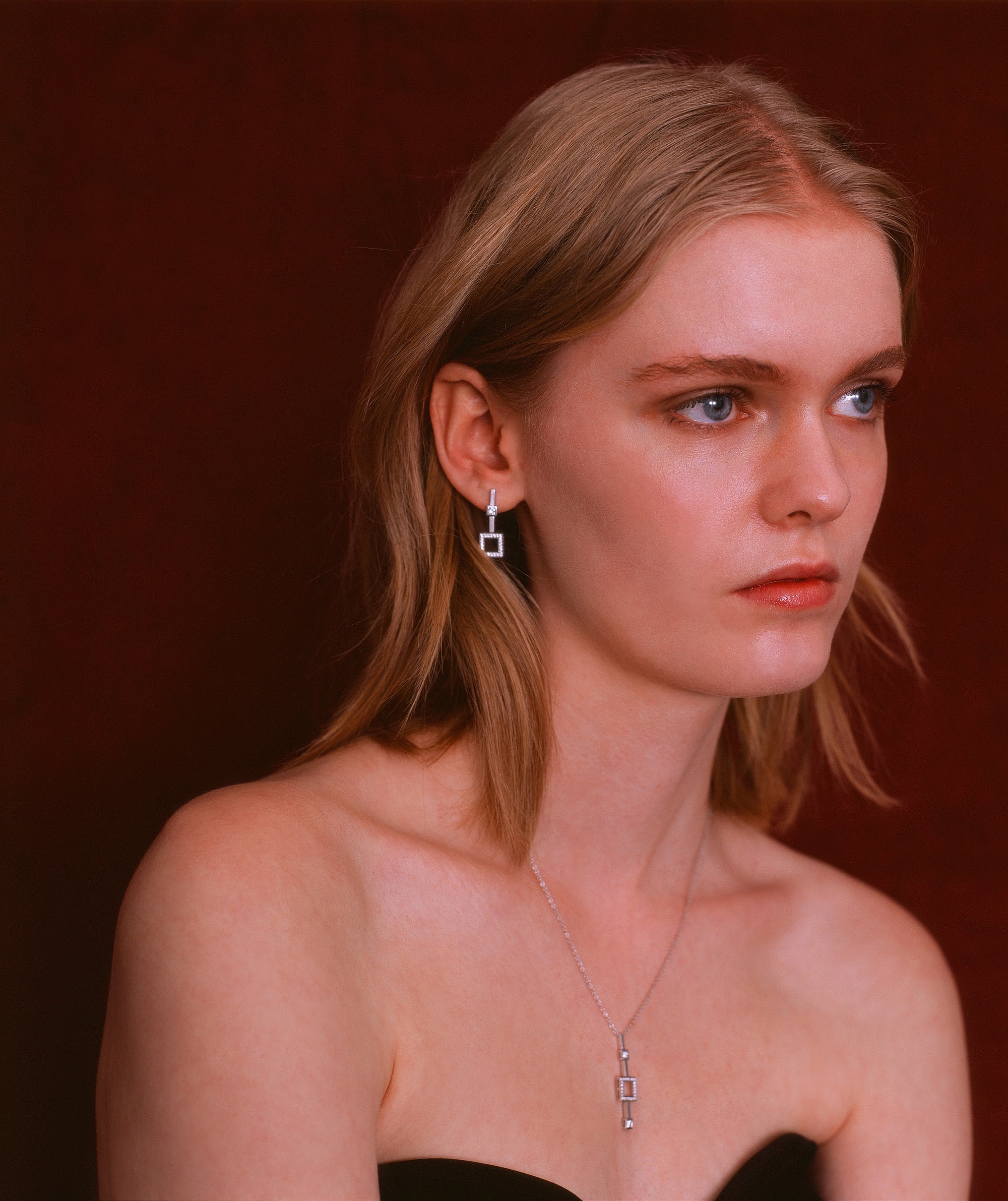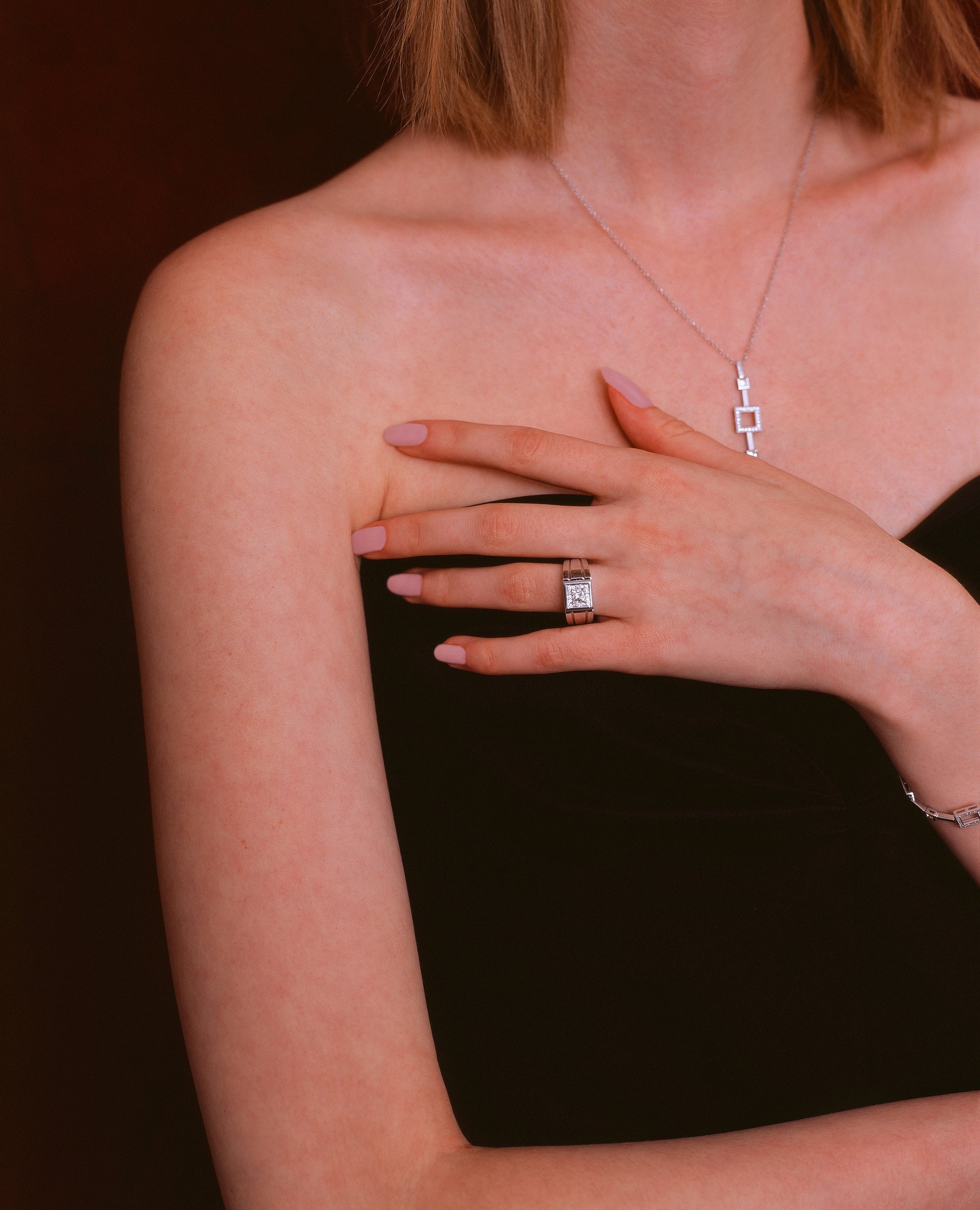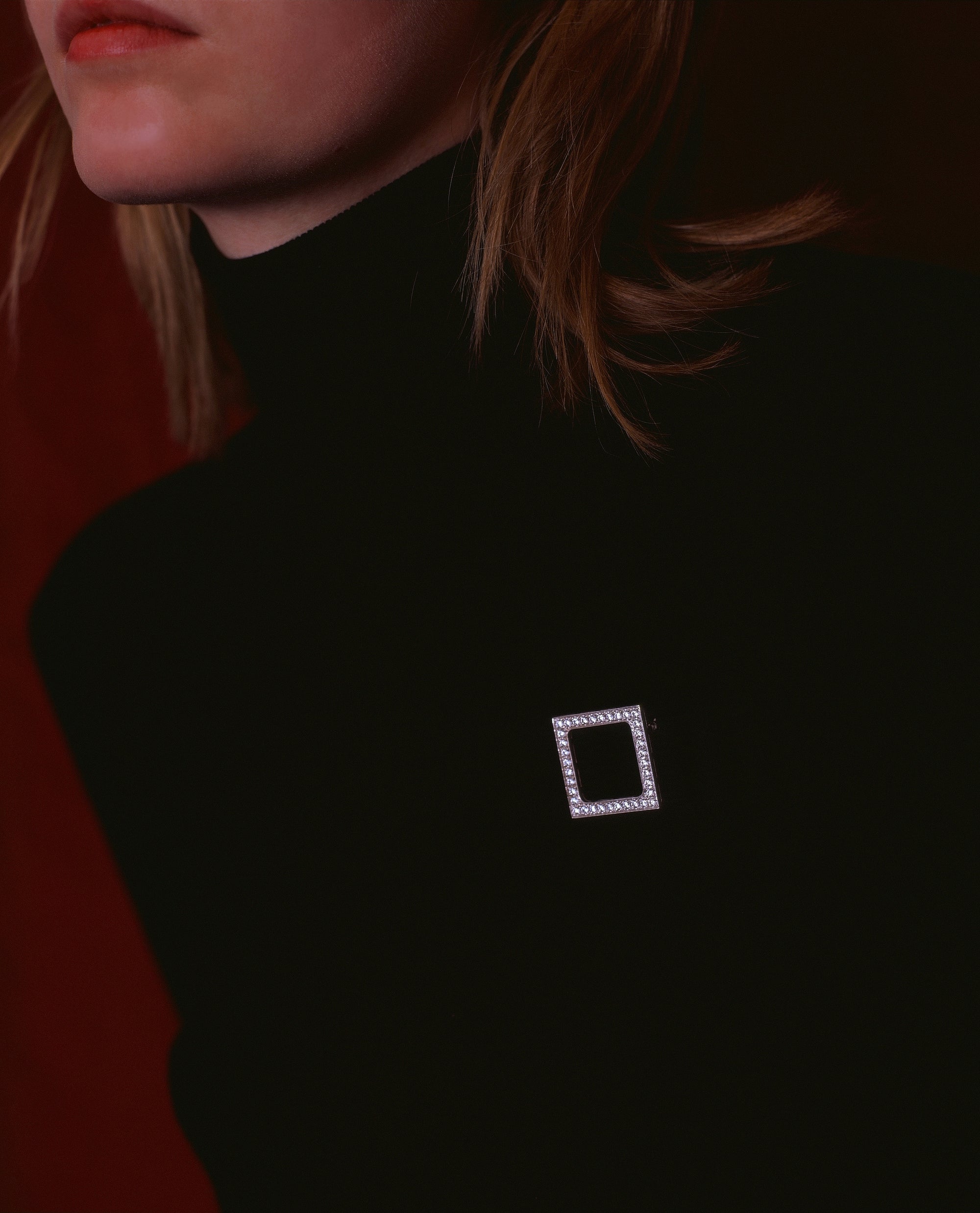 The contrast between the light of the diamond and the material of the leather, and between the distinction of the shape and the indefinable contours of the scales, has its culmination in the triumph of the sharpness of the square of the jewel buckle that seals the wild irregularity of the alligator skin.