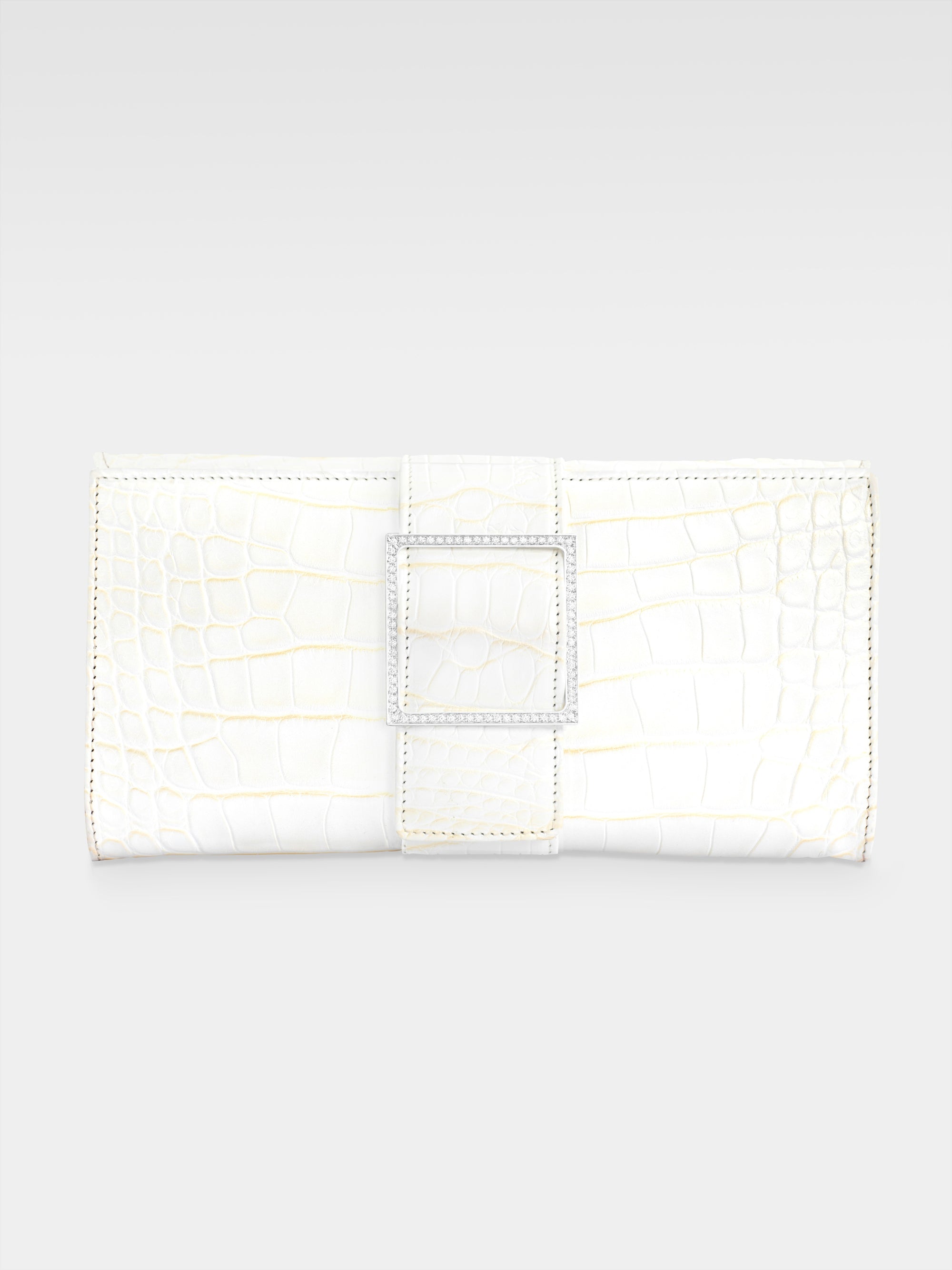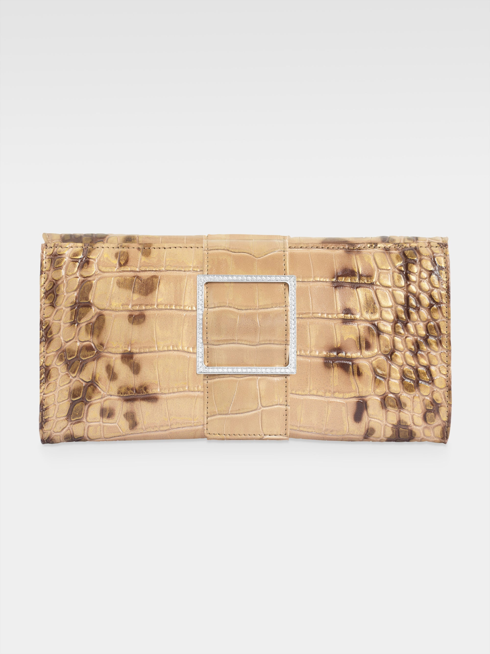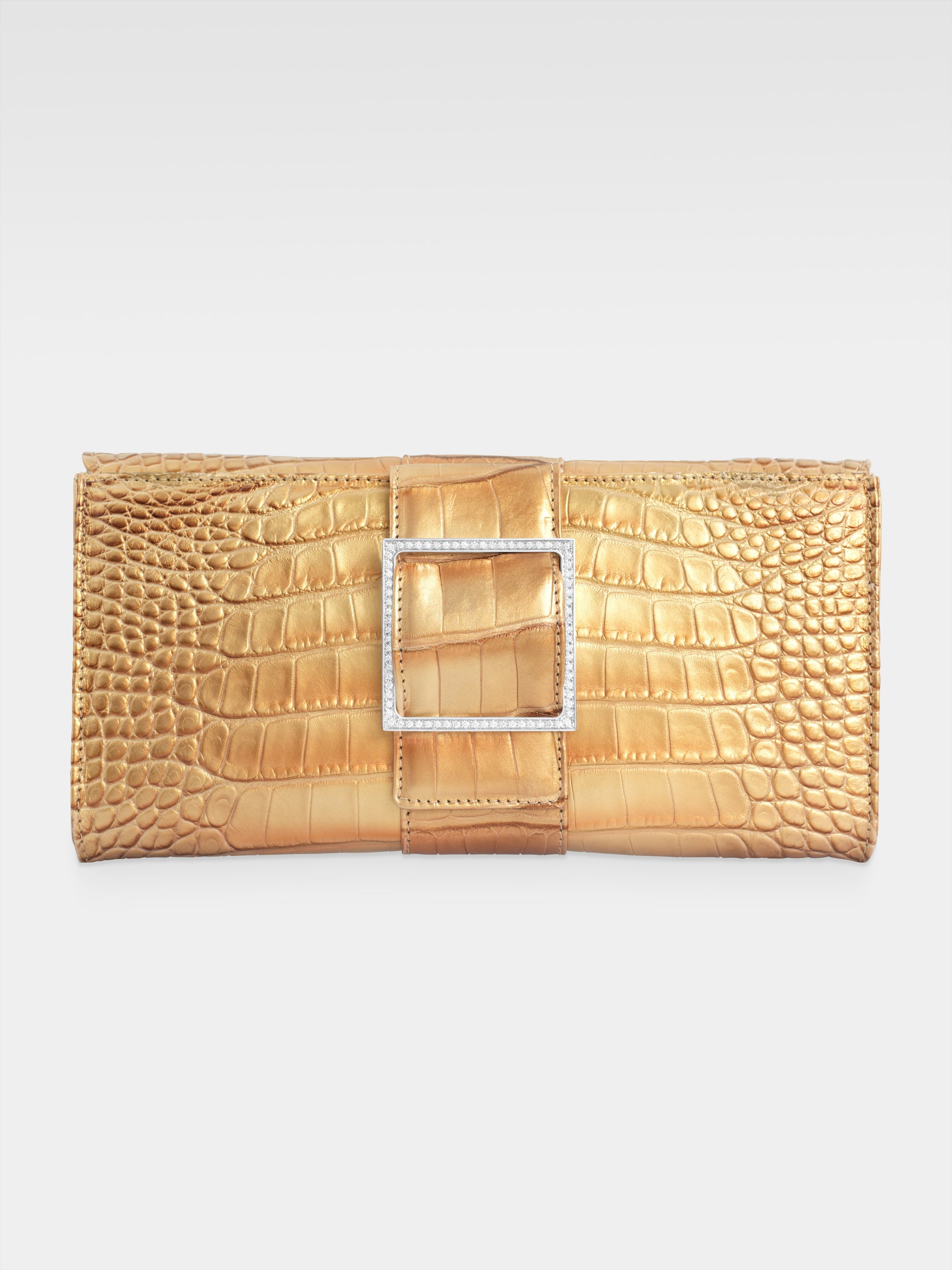 The victory of form over chaos as the origin of the beauty inherent in classical art is the inspiration behind the Sibilla Clutch, the Maison's symbol in which the struggle between opposites achieves harmony in the brilliant geometry of the buckle that stands out against the irregularity of the alligator scales.
