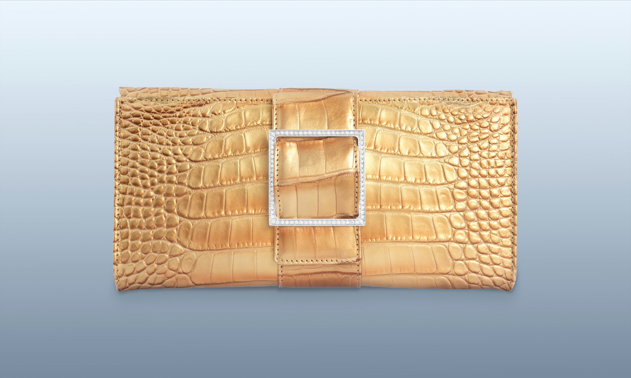 The victory of form over chaos as the origin of the beauty inherent in classical art is the inspiration behind the Sibilla Clutch, the Maison's symbol in which the struggle between opposites achieves harmony in the brilliant geometry of the buckle that stands out against the irregularity of the alligator scales.